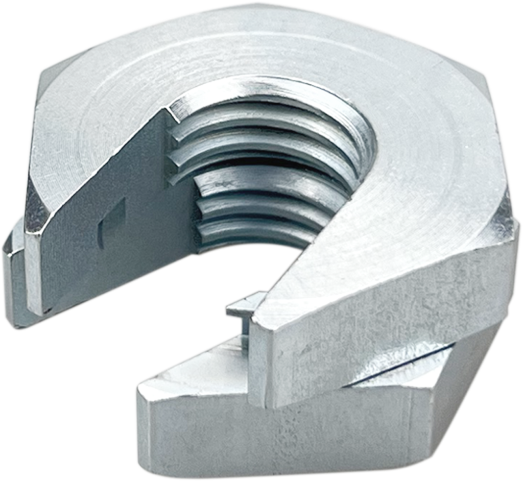 The slip-on lock nut is easy to position at any point on a thread. Just open the lock nut, position where required, twist the lock nut closed and tighten with a spanner.